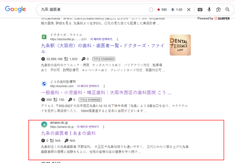 - "九条 歯医者" 구글 1페이지 진입