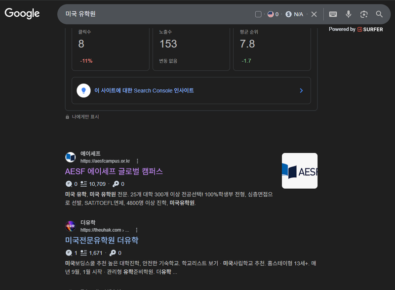 AESF 미국 유학원 웹사이트 SEO 작업