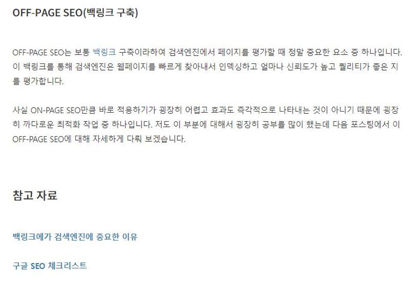 백링크가 SEO에 굉장히 큰 효과가 있는 것은 사실입니다. 하지만 제대로 된 콘텐츠 작업, 알맞은 ON-PAGE 적용이 없는 이상은 백링크만으로 순위를 올리기 굉장히 까다롭다고 말씀드리고 싶습니다.